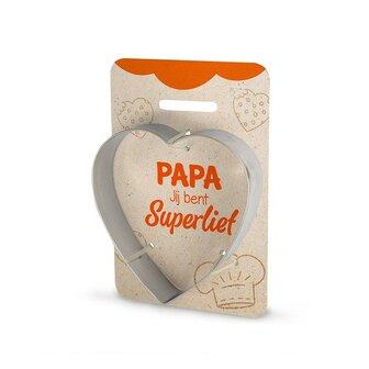 Leuke koekjes uitsteker in de vorm van een hart met de teks: Papa jij bent superlief. Leuk om te geven als cadeautje voor vaderdag, samen met een zakje koekjesmix!