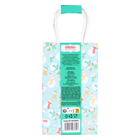 - Verpakking van 4 tassen versierd met een sneeuwmanontwerp. Meet 120 x 288mm en is voorzien van een stevige handgreep.