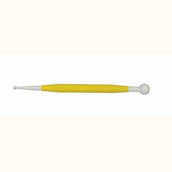 Modelleer en taartdecoratie gereedschap van hoogwaardig materiaal met 2 balvormige uiteinden (doorsnedes ca. 12 mm. en ca. 3 mm.). Te gebruiken om bijv. oogjes aan te geven, of het midden van de bloem mooi aan te geven, waardoor blaadjes omhoog komen, maar ook om randen mee glad te maken. Engelstalige gebruiksaanwijzing.