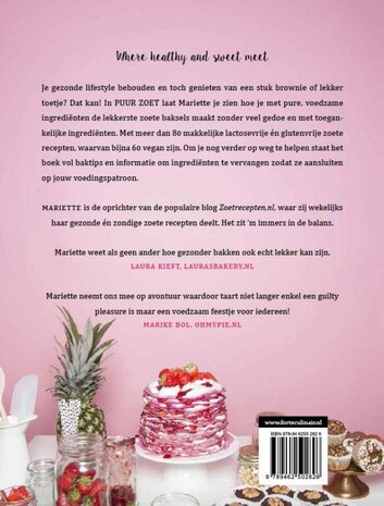 Je gezonde lifestyle behouden en toch genieten van een stuk brownie of lekker toetje? Dat kan! In PUUR ZOET legt Mariette van Tuyl van het populaire blog Zoetrecepten de basis voor het gezondere bakken. Dit boek helpt jou om het gebruik van toegevoegde suikers, vet en room te minimaliseren en daar een pure vervanger voor te vinden.