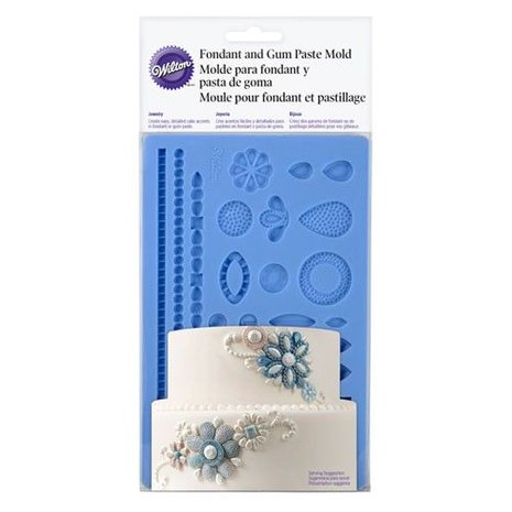 Eenvoudig prachtige decoraties maken? Dat gaat gemakkelijk met de flexibele Wilton Fondant & Gum Paste Mold Jewelry. Deze Wilton mold bevat diverse figuren, zodat je je gehele taart kunt decoreren. Doordat deze mold flexibel is, kun je de figuren er gemakkelijk uithalen. Geschikt voor fondant, marsepein en gum paste.